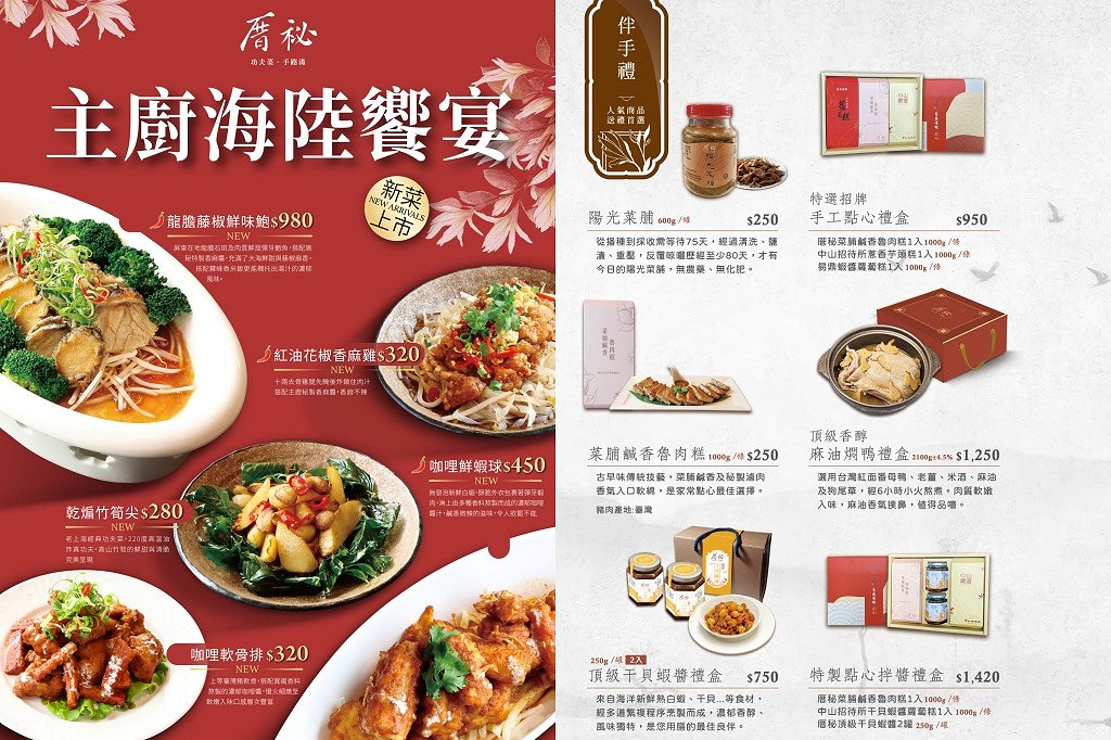 以台菜和功夫菜受到好評的厝秘在台中就有兩家分店,不定期更換菜單,讓人每一次來都有新鮮感,很適合三五好友或是家庭聚餐~