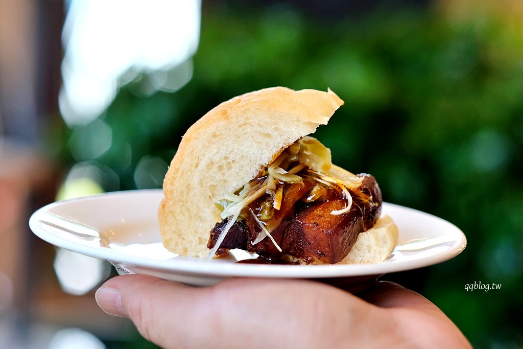 把東坡肉夾進巧巴達麵包裡,就變成刈包吃法,好吃又特別